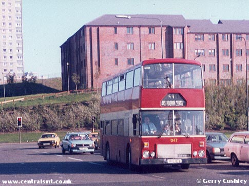 The odd-bus-out in this fleet was D1. Delivered in 1978, during what you might call the Ailsa phase, it carried an Alexander AD body, complete with peaked front dome. After some initial work on the '60' group of services, it was transferred to the Milngavie depot of Alexander (Midland) for a period, to take part in SBG bus trials, being pitted against a native Metrobus, an Ailsa on loan from Fife and an early ECW-bodied Leyland Olympian. On completion of the trials, it joined its more modern sisters at East Kilbride.